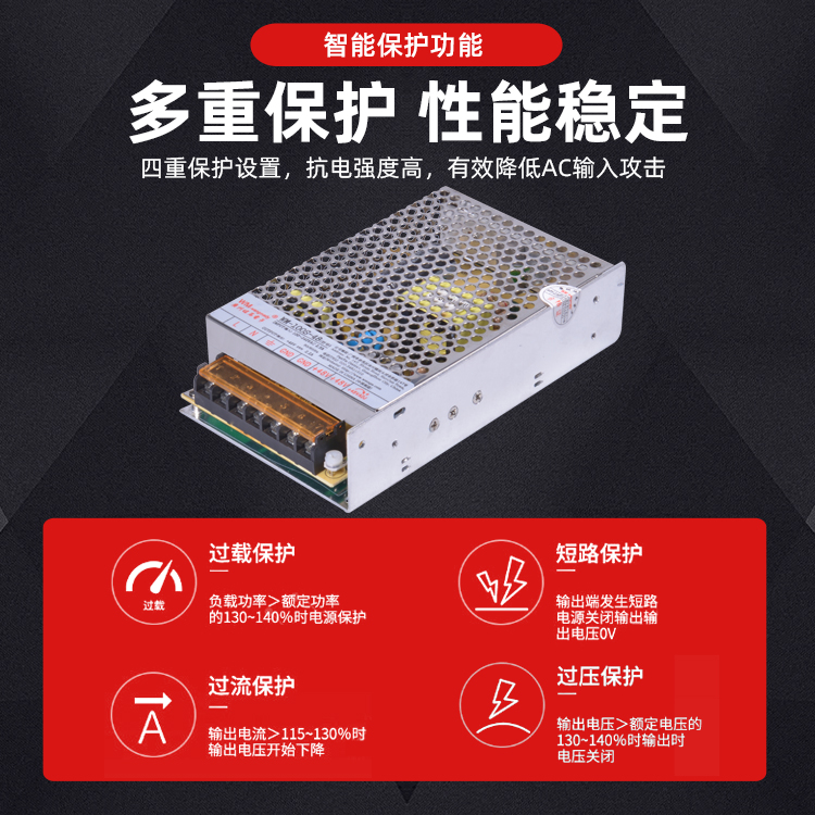 此外,热管理系统还需与电路设计、结构布局协同优化,通过合理布置功率器件、优化PCB散热路径,减少热点聚集,提升整体散热效率。例如,将开关管、二极管等发热核心器件集中布置在散热效果最优的区域,采用铜皮加厚、散热过孔等设计增强PCB散热能力,确保开关电源在-40℃~+70℃的宽温域环境下稳定运行。
