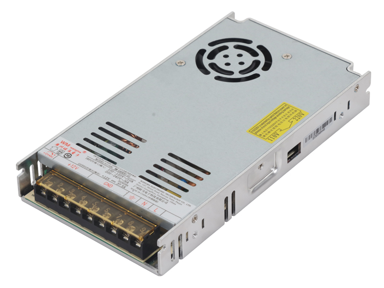 LRS450W旺马开关电源特点:1.体积小,30mm厚度低外型 2.具有输出短路、过流、过压、过温保护功能 3.可承受300VAC输入浪涌电压5s 4.可承受5G振动测试 5.低待机功耗(<0.3W)、高效率(高达91.5%) 6.电源启动LED指示灯 7.内置直流风扇强制风冷(350W) 8.CE、CCC、CQC认证(200W/350W) 9.三年保固